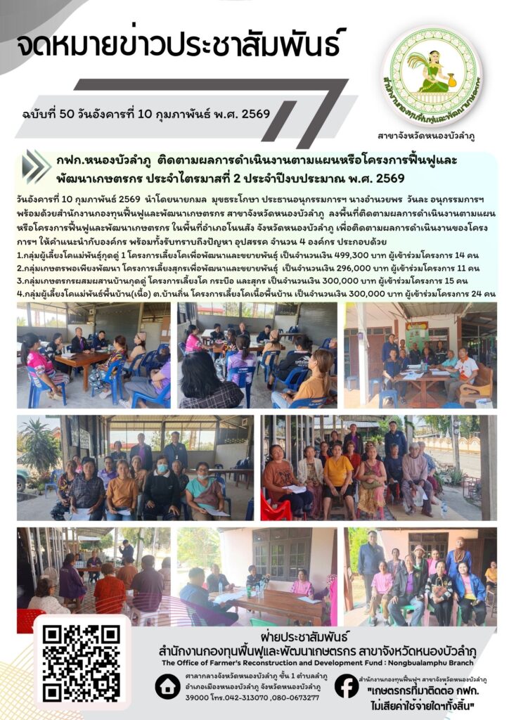 - กฟก.หนองบัวลำภู ติดตามผลการดำเนินงานตามแผนหรือโครงการฟื้นฟูและพัฒนาเกษตรกร ประจำไตรมาสที่ 2 ประจำปีงบประมาณ พ.ศ. 2569