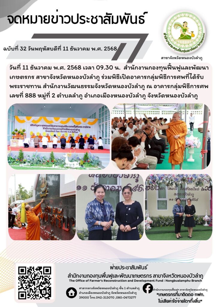 ร่วมพิธีเปิดอาคารกลุ่มพิธีการศพที่ได้รับพระราชทาน สำนักงานวัฒนธรรมจังหวัดหนองบัวลำภู
