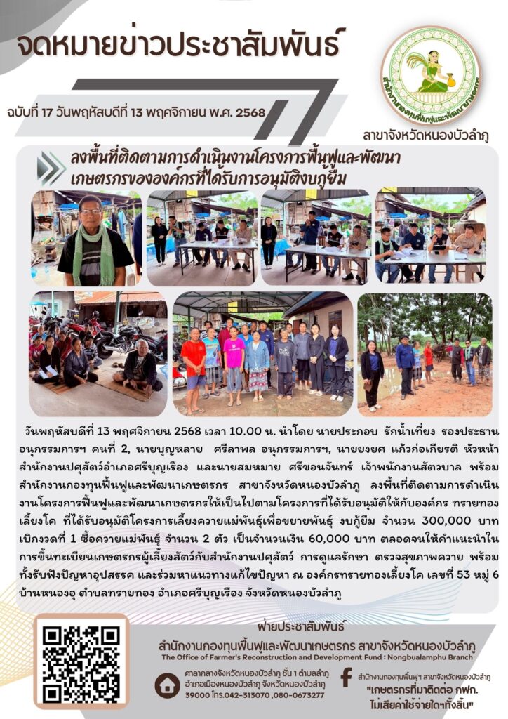 ลงพื้นที่ติดตามการดำเนินงานโครงการฟื้นฟูและพัฒนาเกษตรกรให้เป็นไปตามโครงการที่ได้รับอนุมัติให้กับองค์กร ทรายทองเลี้ยงโค