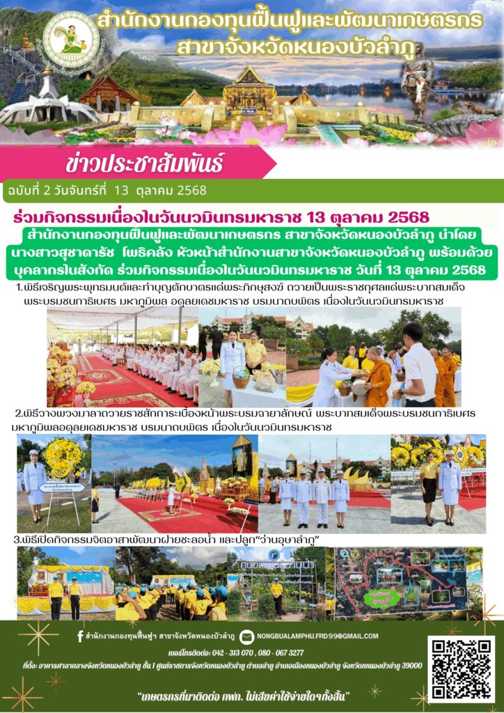 วันเสาร์ที่ 11 ตุลาคม 2568 เวลา 09.30 น. นายเทอดรัฐ นาหัวนิล ผู้แทนเกษตรกร ภาคตะวันออกเฉียงเหนือ ลงพื้นที่ประชุมชี้แจงเกษตรกรสมาชิก เพื่อแจ้งข้อมูลข่าวสาร และมติที่ประชุมคณะกรรมการกองทุนฟื้นฟูและพัฒนาเกษตรกร ครั้งที่ 5/2568 ให้กับประธานองค์กร และสมาชิกเกษตรกร สังกัดสำนักงานสาขาจังหวัดหนองบัวลำภูให้รับทราบ โดยมีอนุกรรมการจังหวัดหนองบัวลำภู อนุกรรมการจังหวัดเลย และสำนักงานสาขาจังหวัดหนองบัวลำภู ร่วมประชุมในครั้งนี้ ณ วัดป่าอุทยาน ตำบลลำภู อำเภอเมืองหนองบัวลำภู จังหวัดหนองบัวลำภู