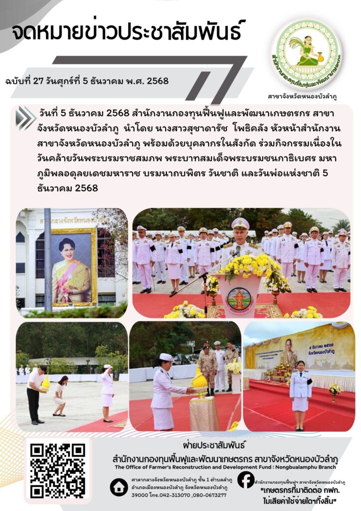 ร่วมกิจกรรมเนื่องในวันคล้ายวันพระบรมราชสมภพ พระบาทสมเด็จพระบรมชนกาธิเบศร มหาภูมิพลอดุลยเดชมหาราช บรมนาถบพิตร วันชาติ และวันพ่อแห่งชาติ 5 ธันวาคม 2568